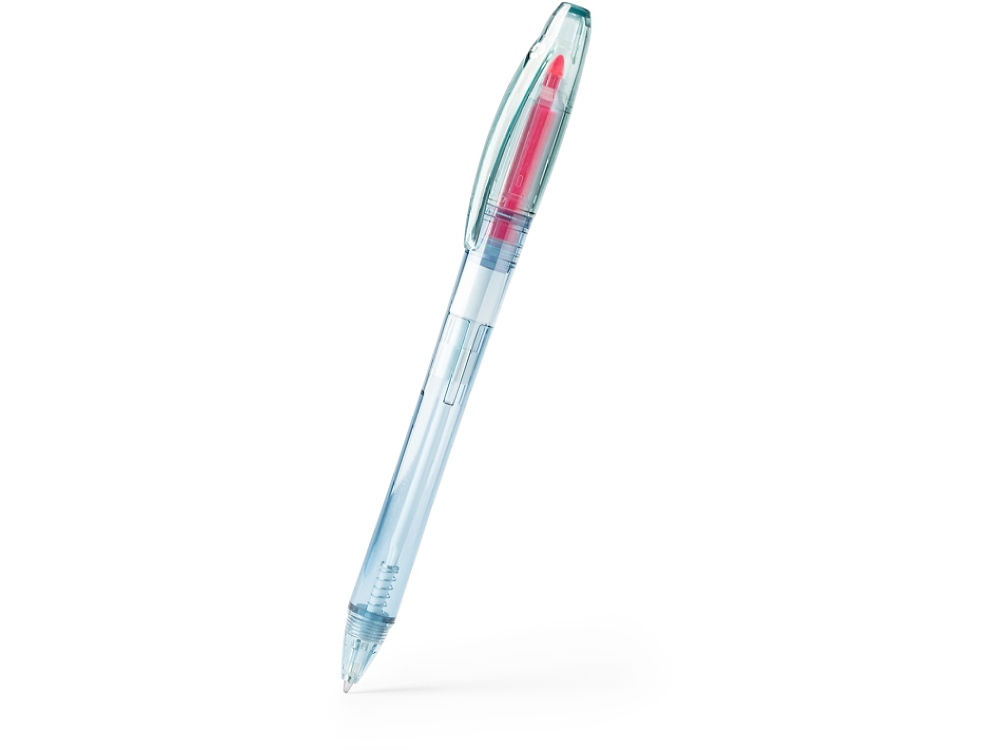 Ручка/маркер с синим прозрачным корпусом и маркером доступна в трех флуоресцентных цветах.