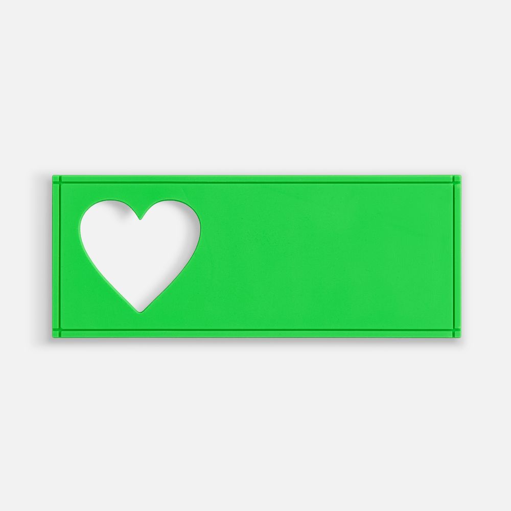 Модель : Лейбл из ПВХ с вырубкой «Сердце», зеленый неон