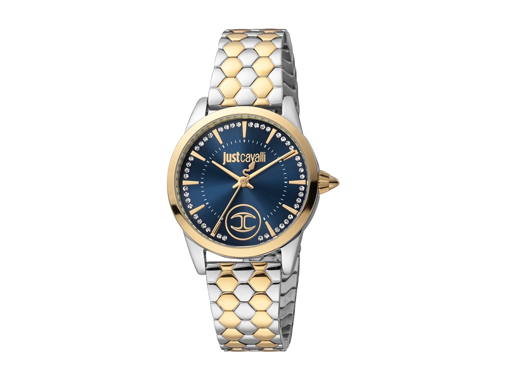 Цвет : корпус- комбинированный (стальной/желтое золото), циферблат- синий, кристаллы Swarovski, крепление- стальной/желтое золото