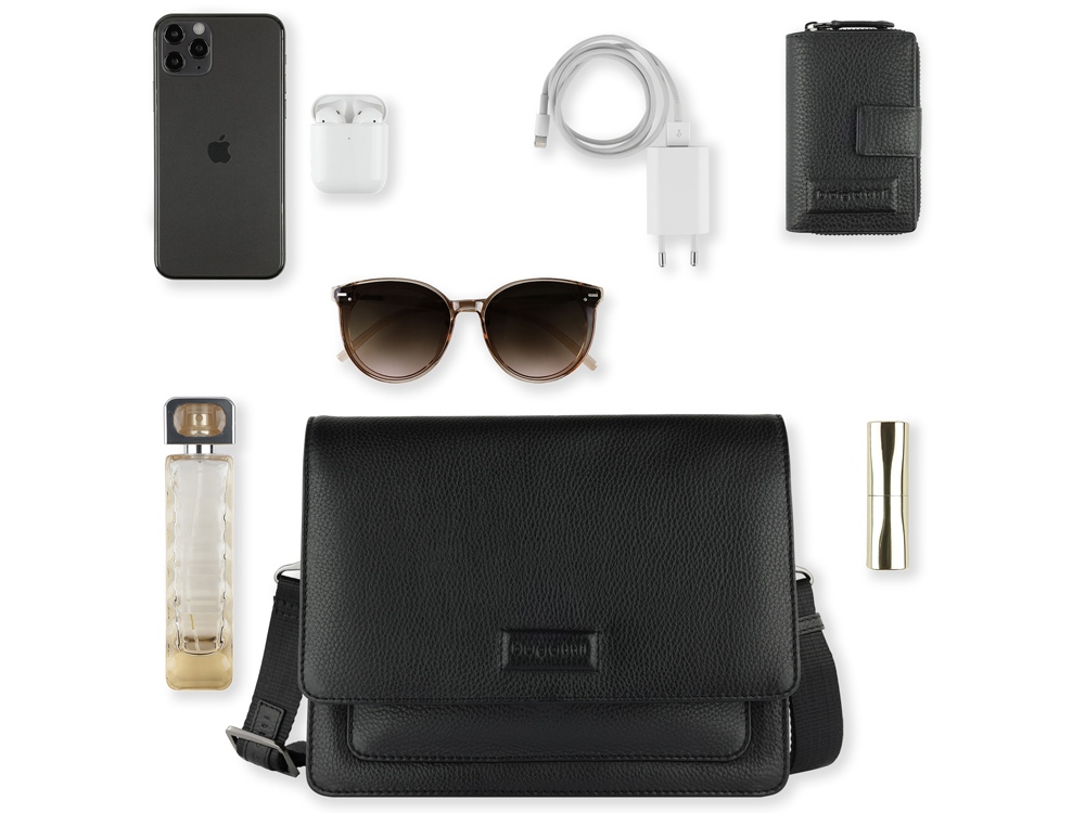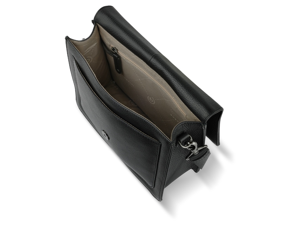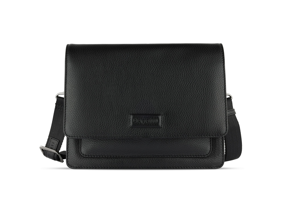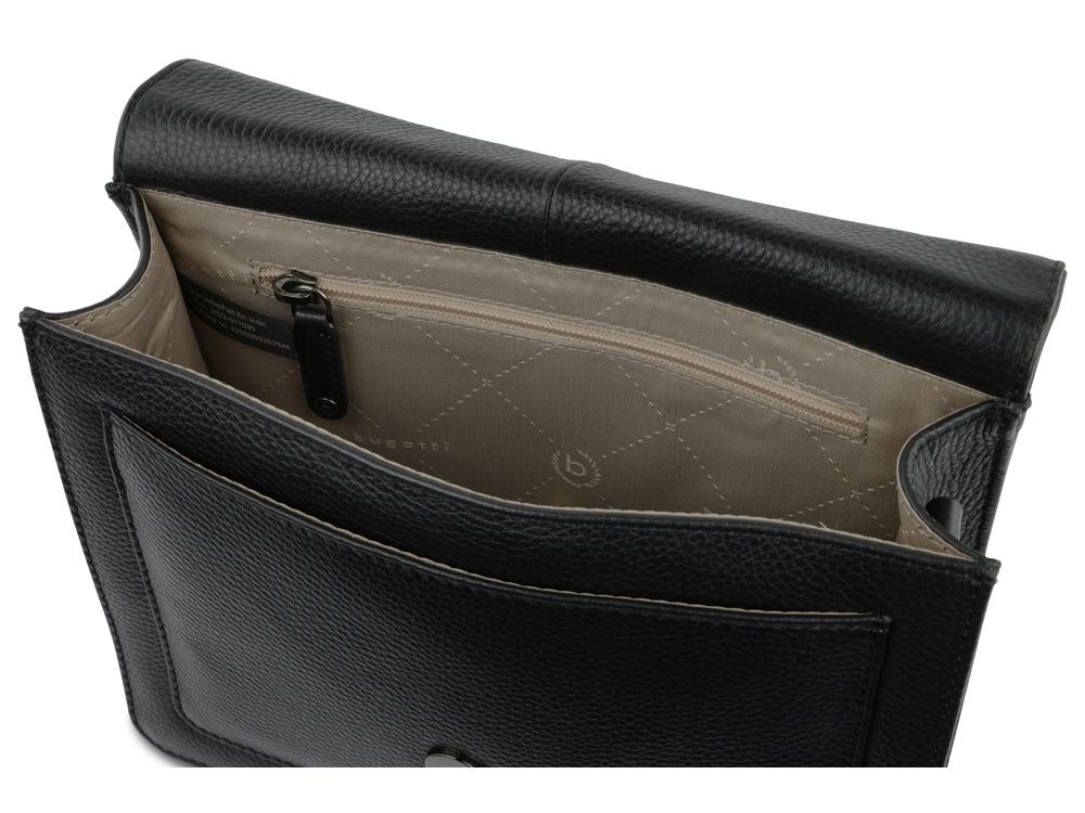 Сумка через плечо женская BUGATTI Elsa, чёрная, воловья кожа/полиэстер, 25х8,5х20 см