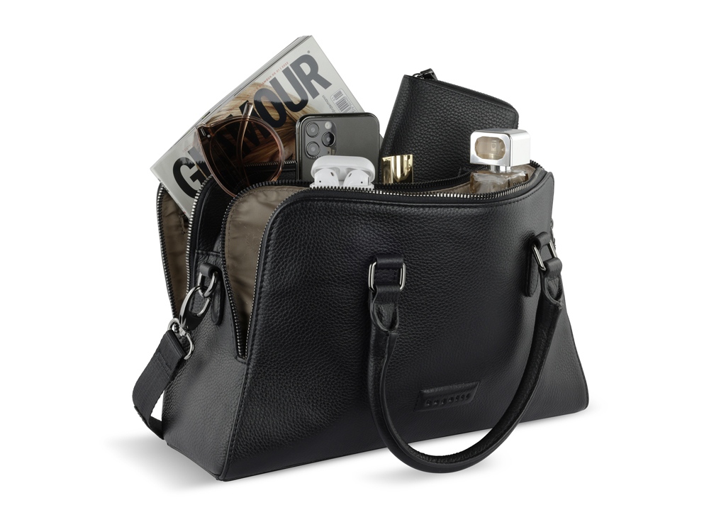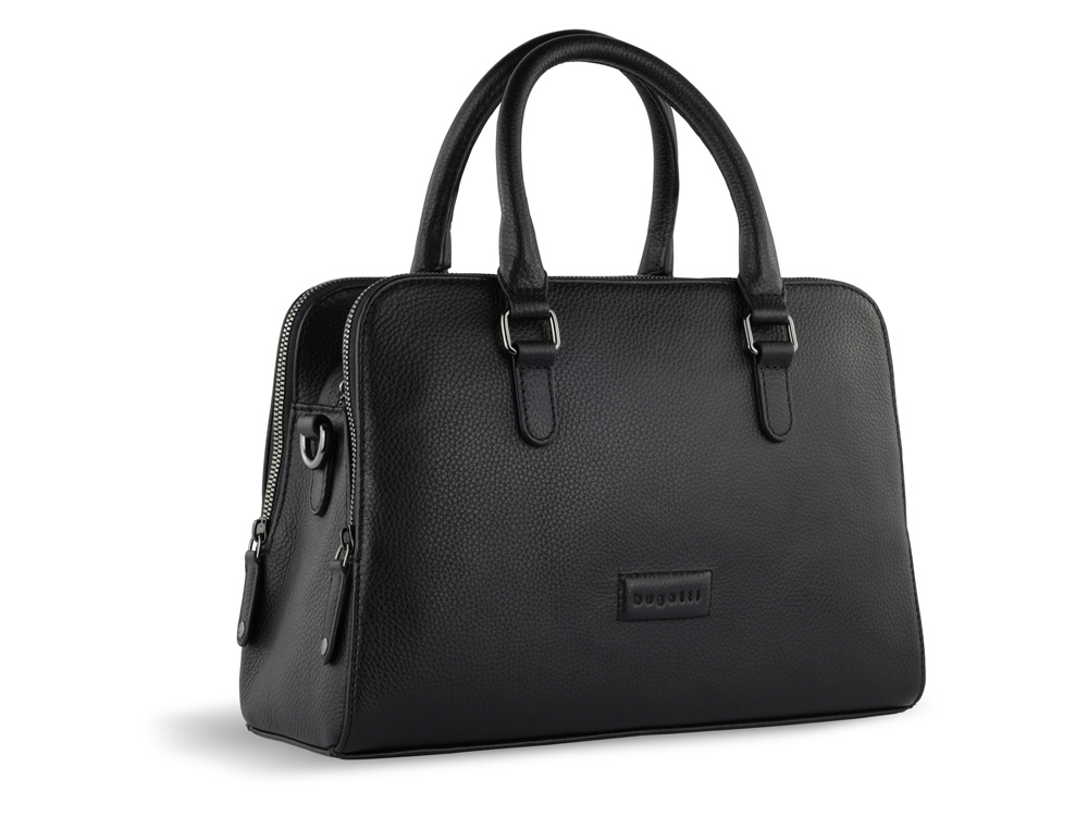 Сумка женская BUGATTI Elsa, чёрная, воловья кожа/полиэстер, 32х13х22 см