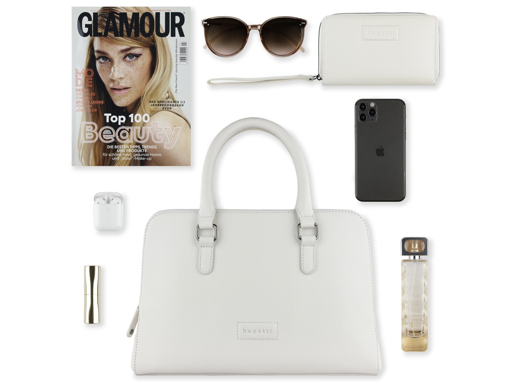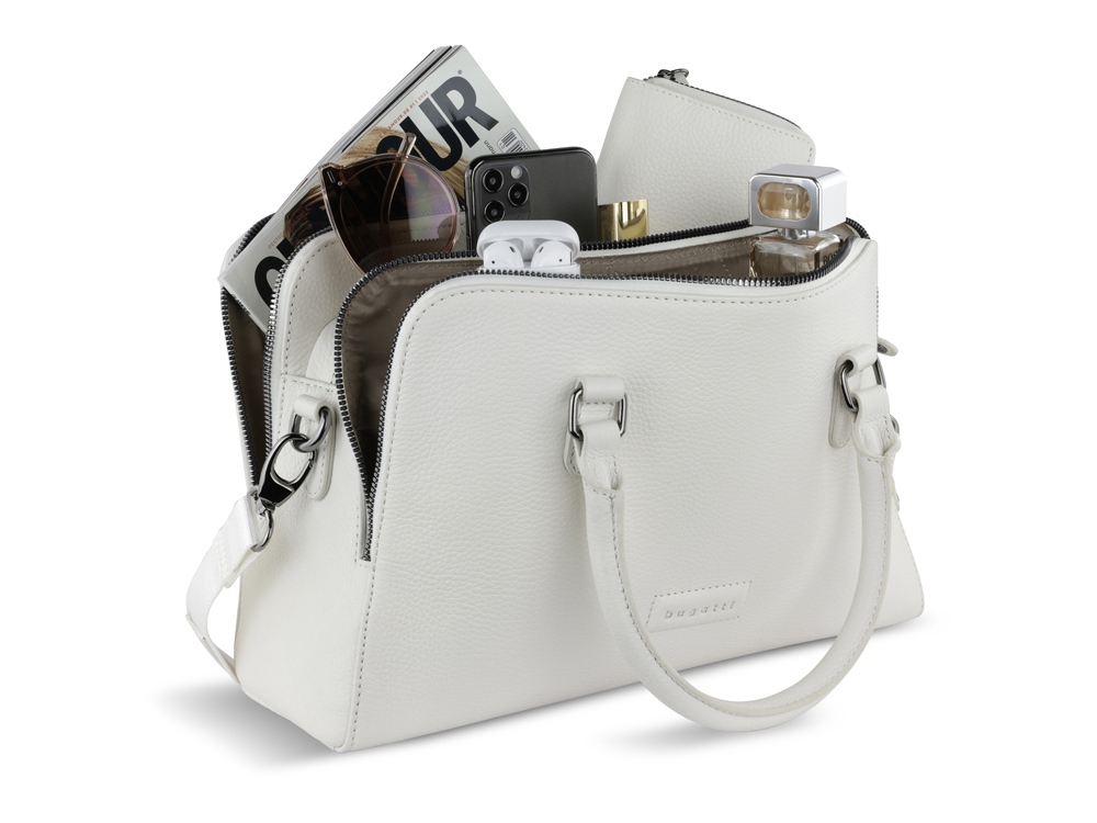 Сумка женская BUGATTI Elsa, белая, воловья кожа/полиэстер, 32х13х22 см
