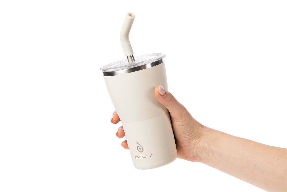 корпус - нержавеющая сталь, крышка - пластик, нержавеющая сталь, пластик, трубочка - нержавеющая сталь, пищевой силикон
