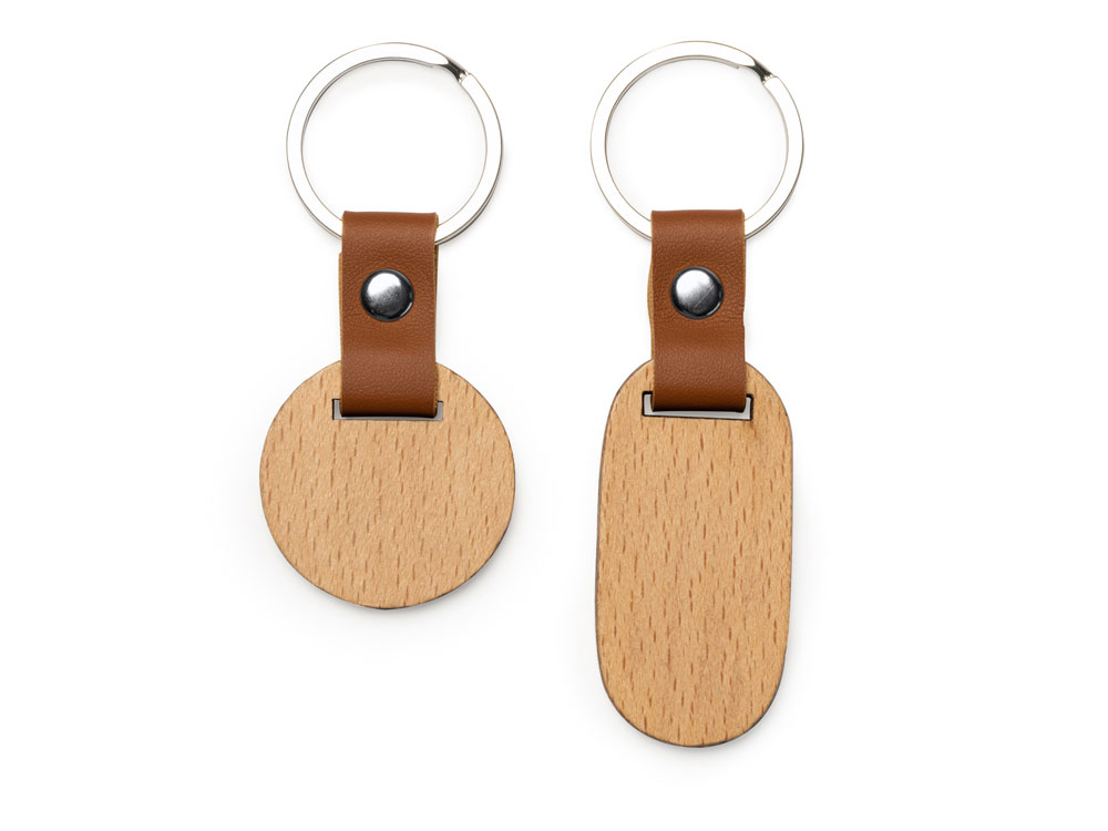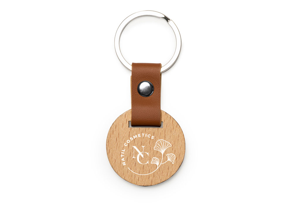 Брелок MARBEL из натурального дерева, круглый, натуральный/коричневый