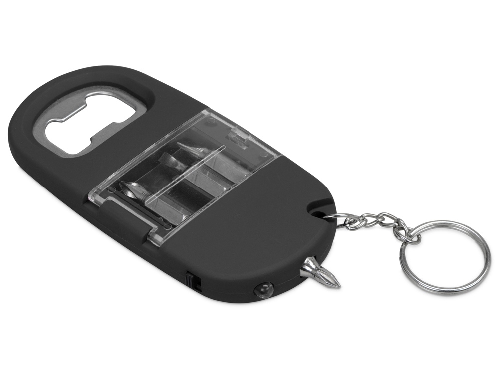 Брелок-открывалка с отвертками и фонариком Uni, софт-тач, черный