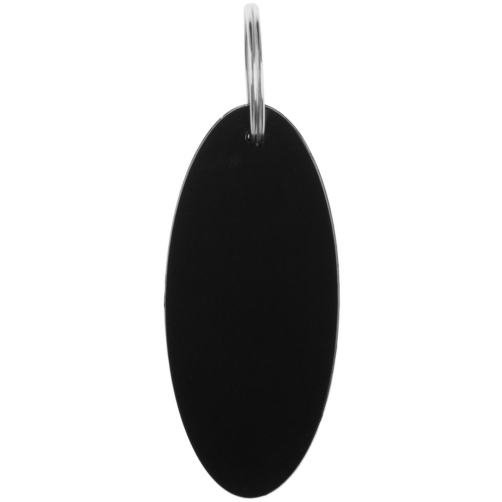 Лаконичный брелок из полипропилена с металлическим кольцом.