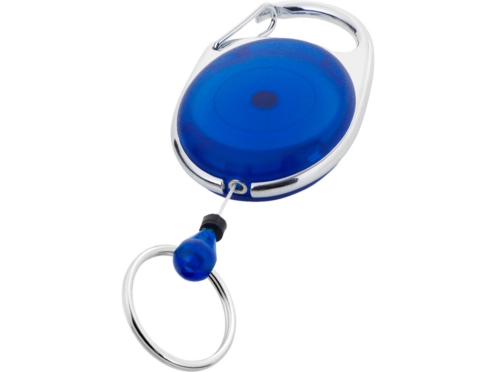 Брелок с ретрактором Demos идеальный предмет для любого офиса, торговой ярмарки, конференции или горнолыжного склона. Роликовая клипса оснащена карабином, а благодаря прочному механизму и шнуру длиной 60 см посетитель может легко прикрепить к нему бейдж.
