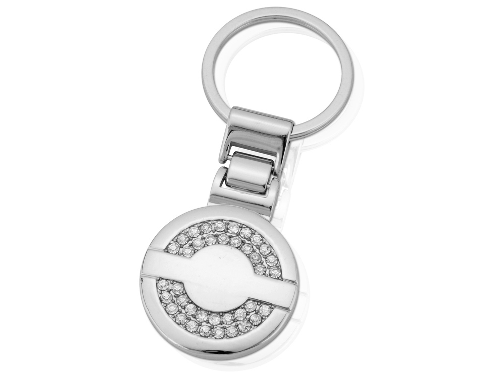 Брелок, щедро украшенный стразами, понравится любой девушке. Оригинальное крепление брелока к кольцу и современный дизайн делают брелок не просто промо-сувениром, а стильным аксессуаром. Персонализация возможна методом гравировки.