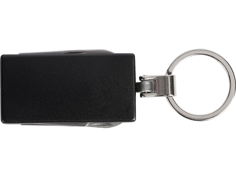 Брелок-мультитул на кольце в металлическом корпусе с заметным полем под нанесение.