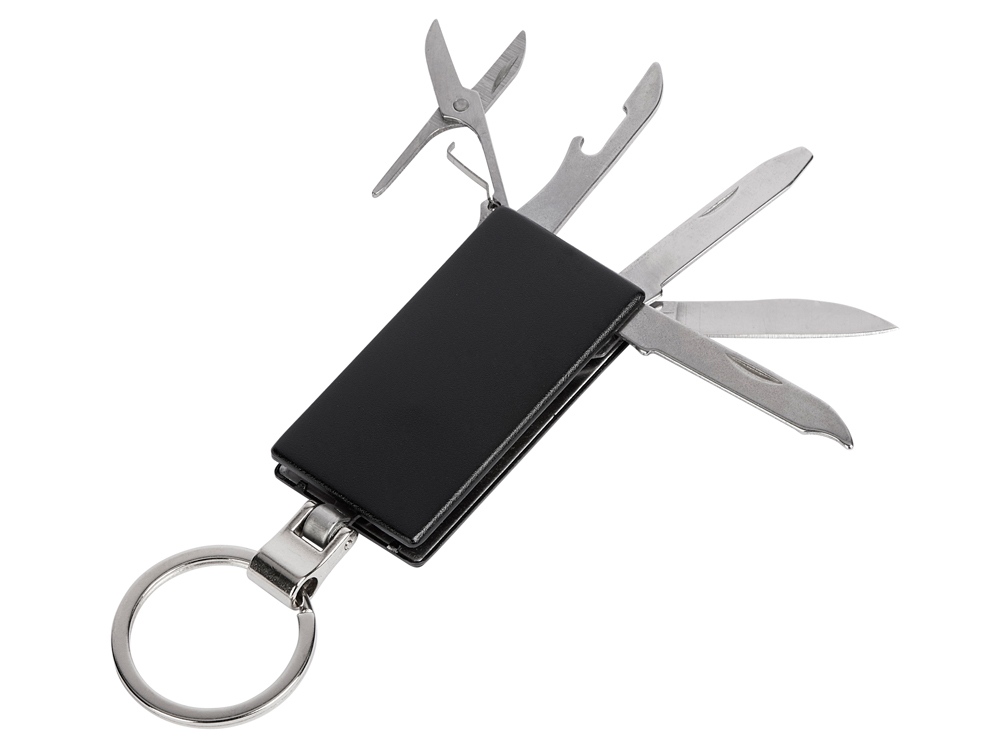 В комплекте нож, ножницы, пилка, плоская отвертка, открывашка для банок.