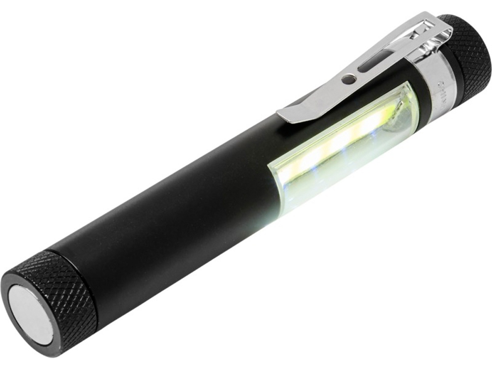 Карманный фонарик Stix с зажимом, оснащен бескорпусным чипом и магнитным держателем, черный