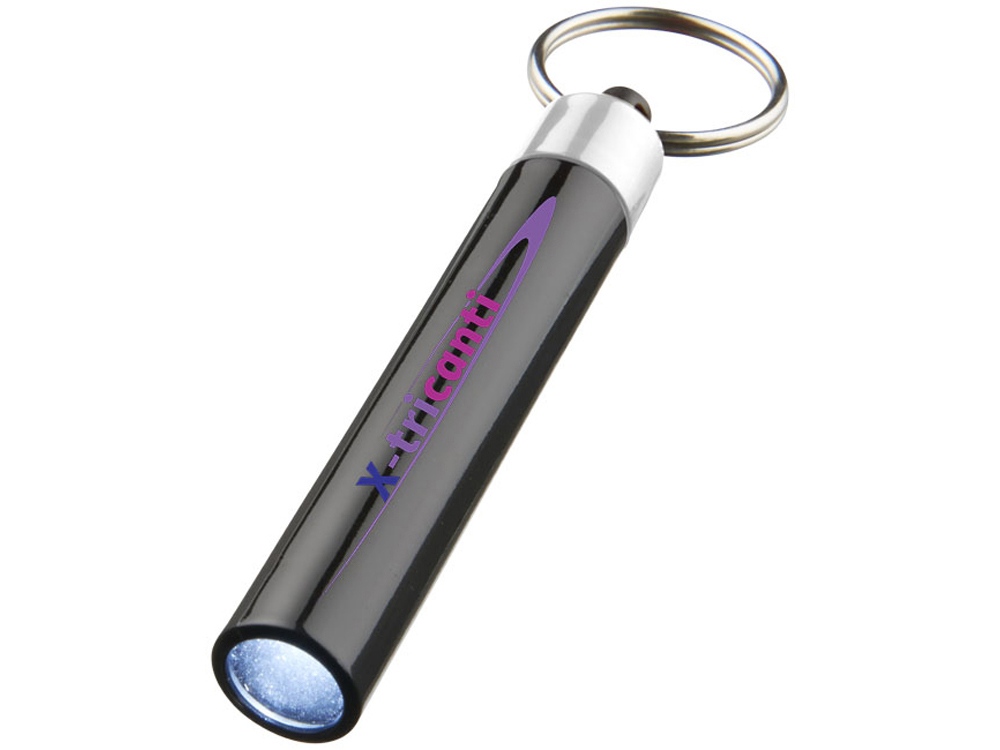 Брелок-фонарик Retro. Покрытие УФ, фонарик с одним диодом с нажимной кнопкой вкл/выкл. Металлическое колечко. Батарейки в комплекте. АБС пластик.