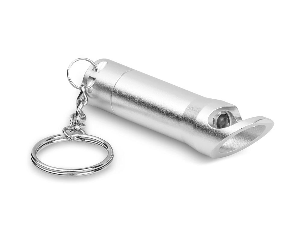 Металлический фонарь с 3 светодиодами, открывалкой и кольцом для ключей. Включает 3 батареи LR44. ø18 x 72 мм