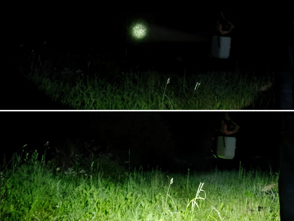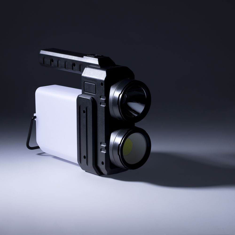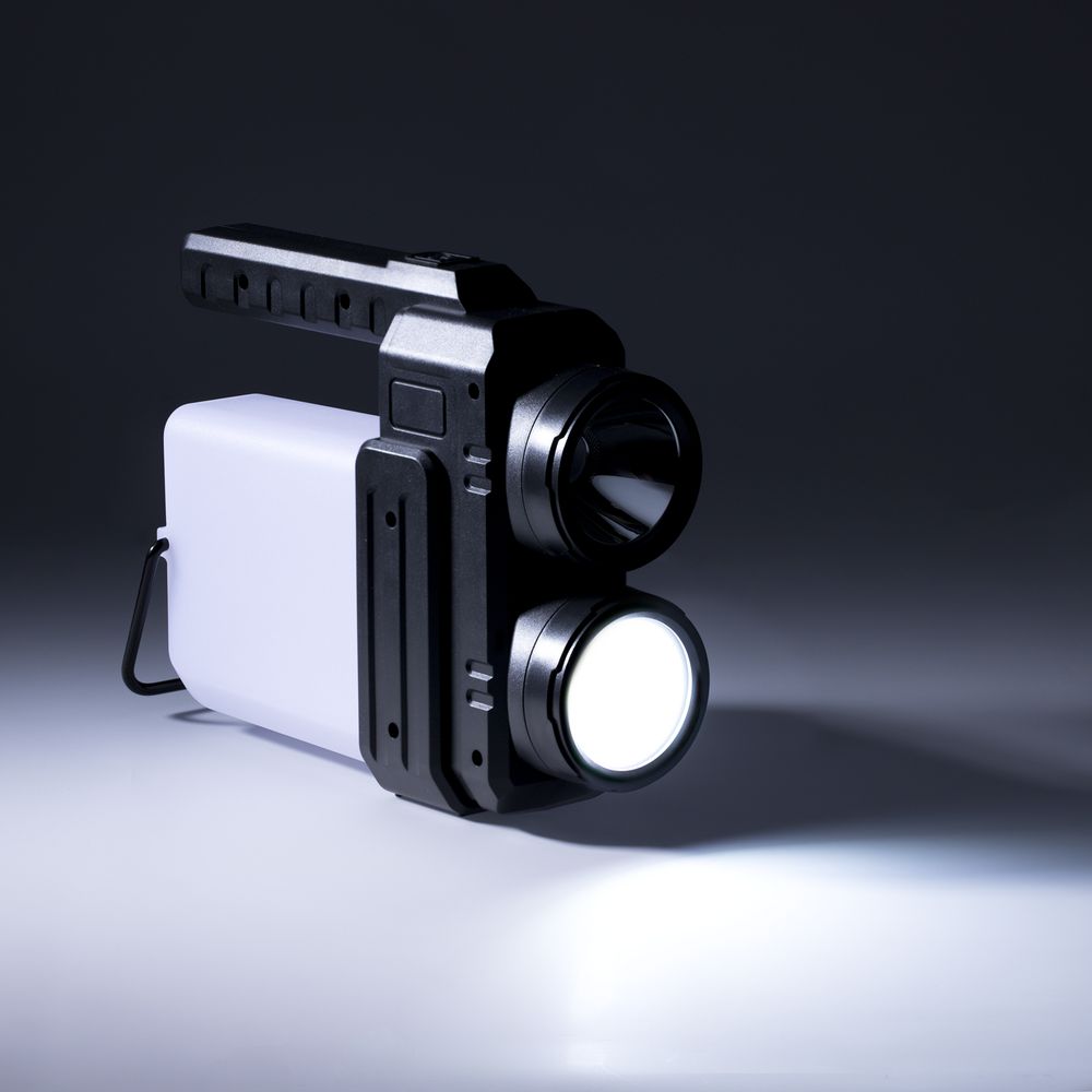 - Рассеянный луч света — светодиод COB мощностью 400 лм, дальность светового луча до 25 м, время работы до 4 ч