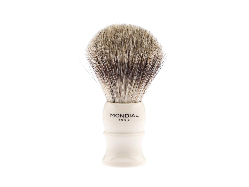 Помазок для бритья Mondial, каучуковая смола, барсучий ворс, рукоять - цвет слоновой кости