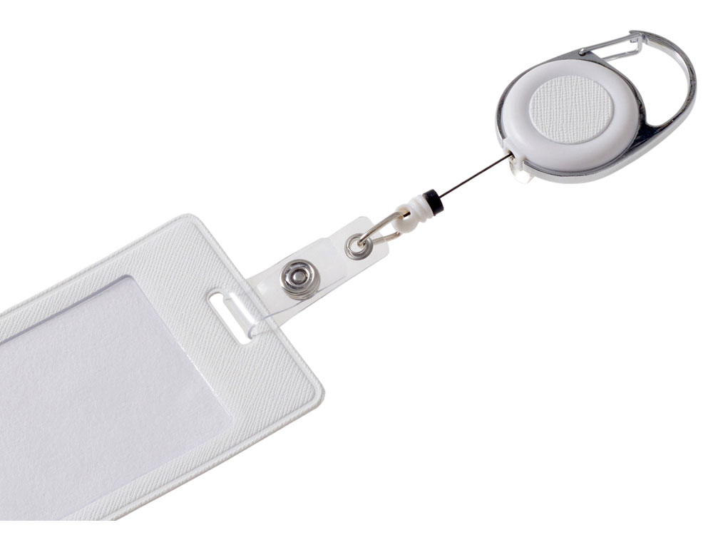 Бейдж с рулеткой-карабин Favor, белый