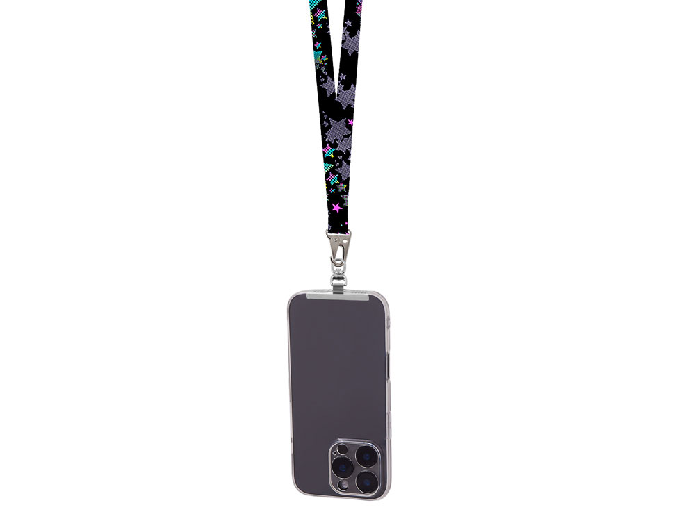 Ланъярд 2,5 см под сублимацию с большим карабином и металлическим держателем для телефона