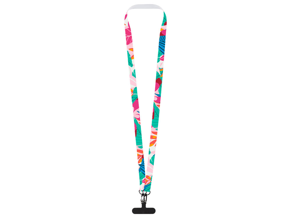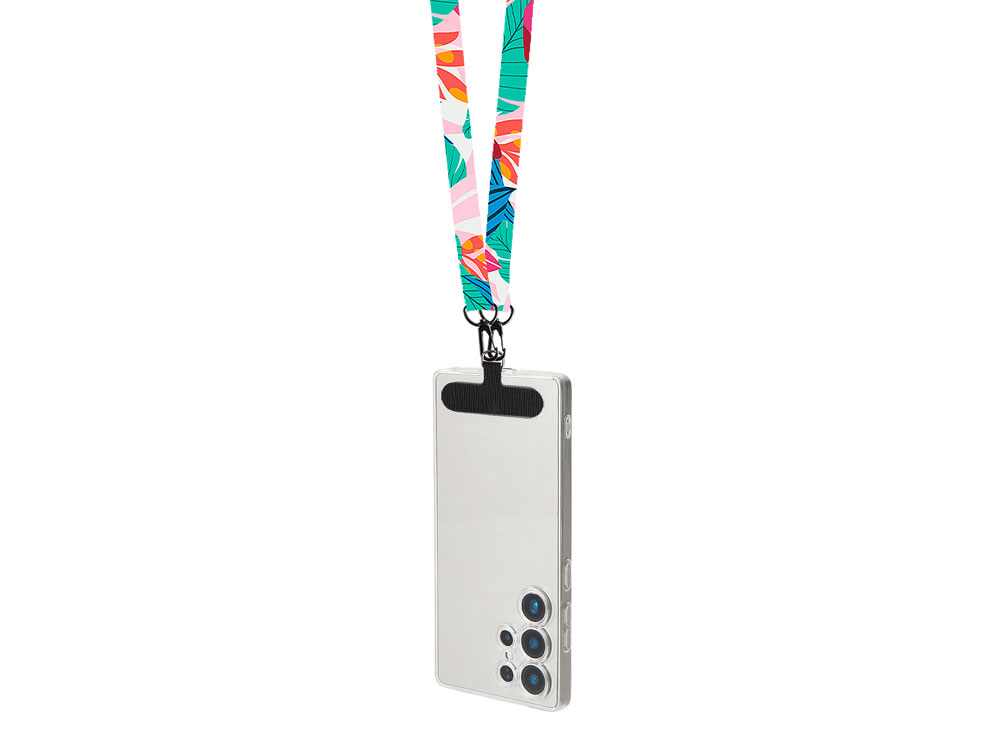 Ланъярд 2 см под сублимацию с 2-мя трендовыми карабинами и узким держателем для телефона из ПЭ, черный