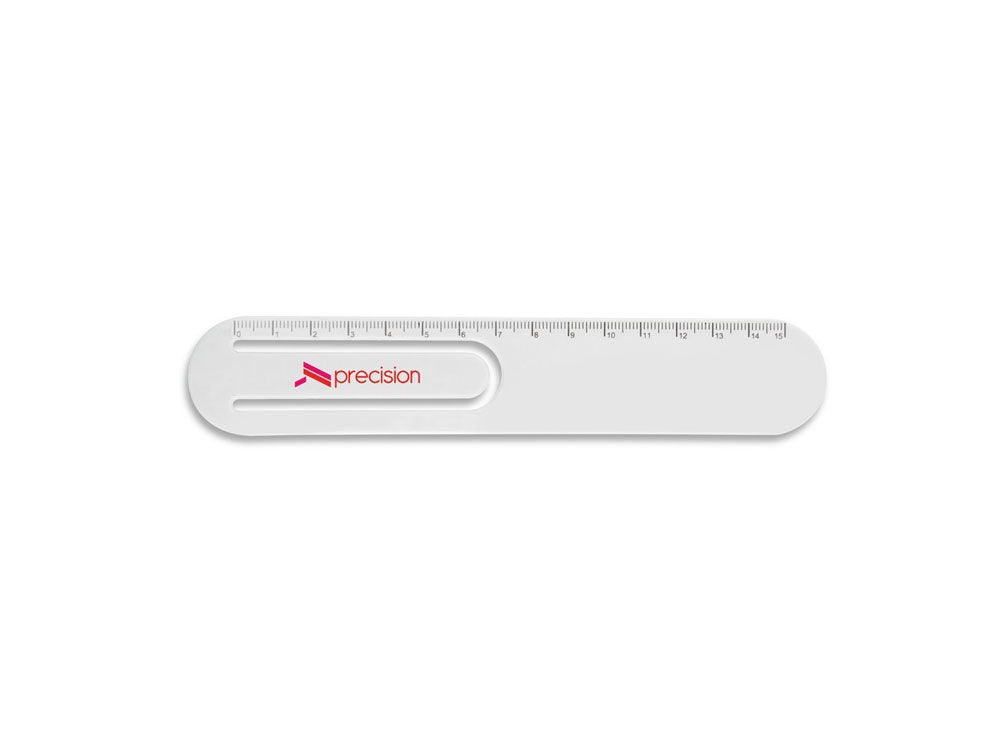 Линейка с нанесенной шкалой 15 см, закругленными углами и зажимом. 174 x 31 x 2 мм. Вид нанесения, рекомендуемый поставщиком: УФ-печать, трафаретная печать.