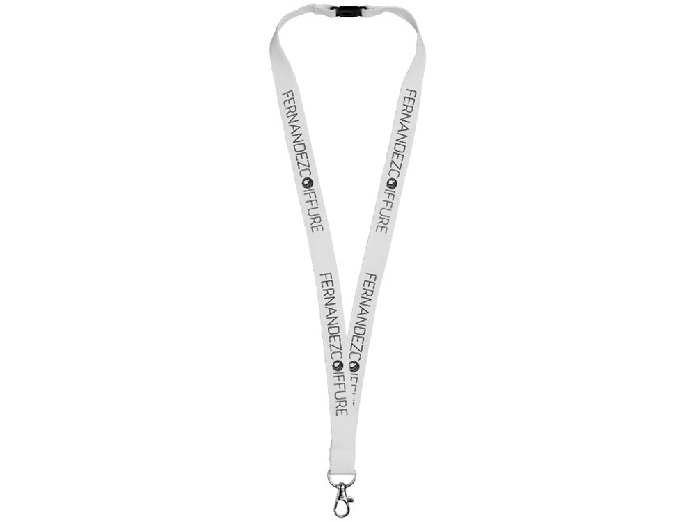 Хлопковый шнурок Dylan с предохранительным зажимом. Шнурок из 100 % хлопка с предохранительным зажимом. Отличное соотношение цены и качества и впечатляющие размеры для логотипа, если вы ищете экологический вариант. Высококачественный овальный крючок с замком-карабином, который идеально подходит для хранения именного бейджа, удостоверения личности или ключей. 100 % хлопок. Термотрансфер (1 цвет (цветные изделия)) на данный товар осуществляется бесплатно. Оплачивается только настройка оборудования в размере 8700 рублей на весь тираж.