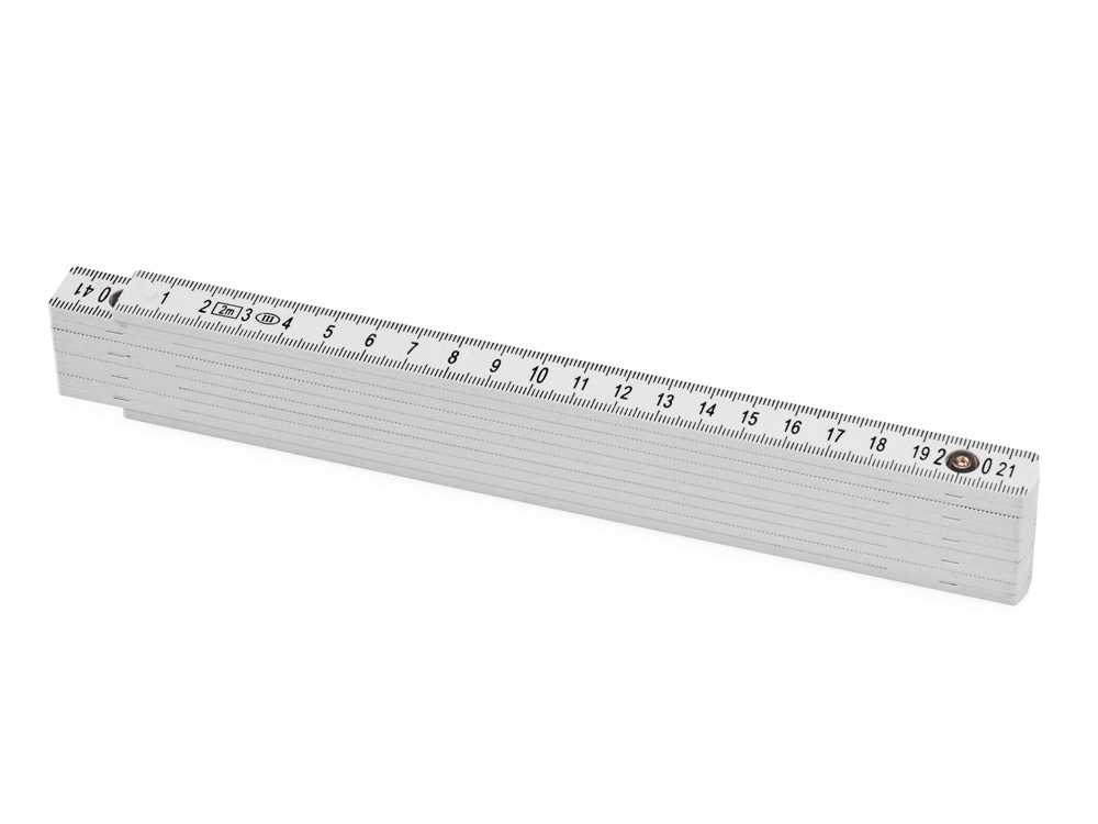 Складная линейка длиной 2 м. Двусторонняя линейка со шкалой на 200 см с одной стороны и 79 дюймов с другой. Линейка состоит из нескольких складных частей. АБС-пластик. На боковую часть можно нанести логотип компании.