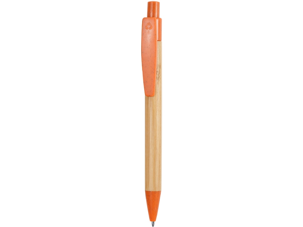 Шариковая ручка с бамбуковым корпусом. Наконечник, клипса и кнопка из пшеничного волокна / ABS. Синие чернила.