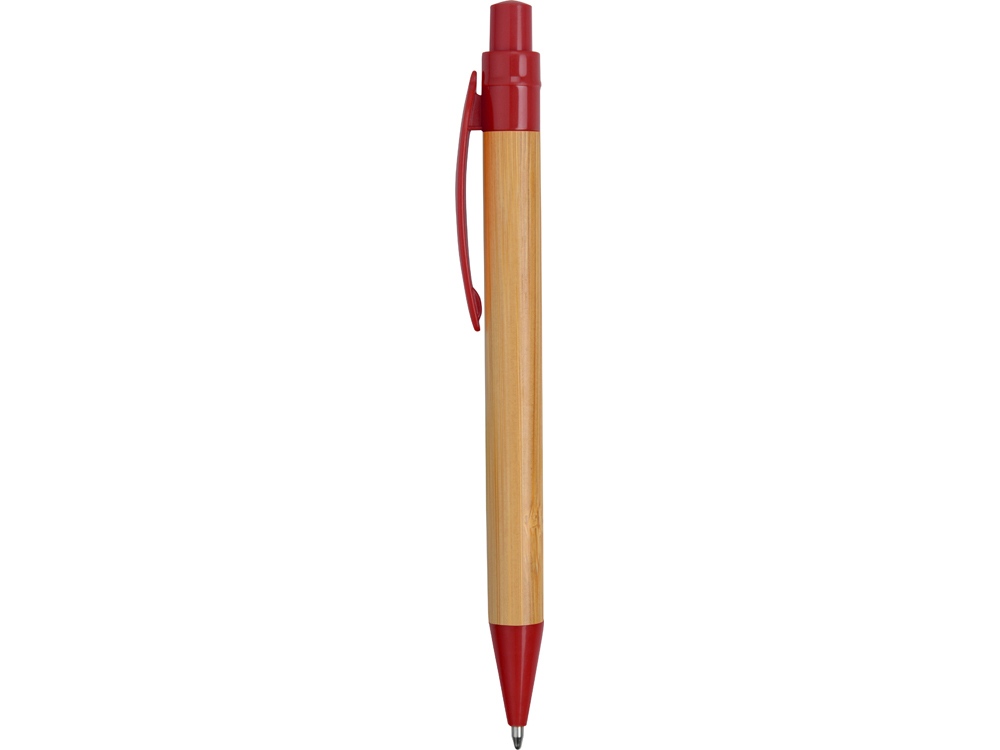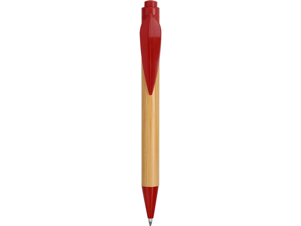 Ручка шариковая Листок, бамбук/красный