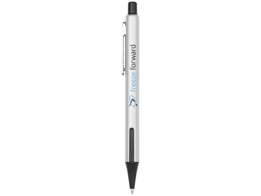 Шариковая ручка Milas. Шариковая ручка с кнопочным механизмом и прорезиненными деталями для удобства. Алюминий.