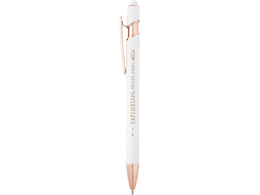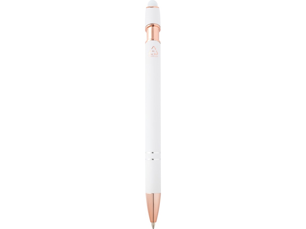 Шариковая ручка Nanna с покрытием из розового золота имеет корпус из переработанного алюминия и сенсорный стилус из силикона. Переработанный алюминий уменьшает количество отходов на свалках и помогает сохранять природные ресурсы для сокращения выбросов парниковых газов. Цвет чернил: черный. Длина непрерывной линии: 800 метров. Размер пера: 1,0 мм. Recycled Aluminium.