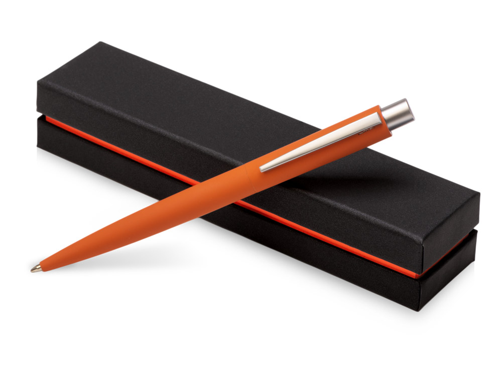 Металлическая шариковая ручка с матовым цветным прорезиненным корпусом. Металлический клип и кнопка в серебристом матовом цвете. Поставляется в красивом черном футляре, внутренний цвет которого идеально сочетается с цветом самой ручки.