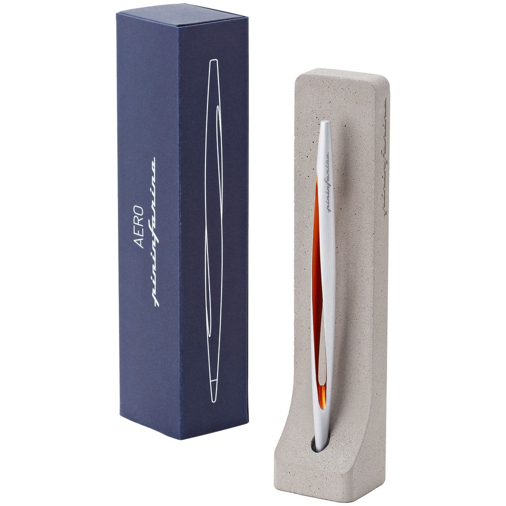 Вдохновленные мощью, формой и красотой воздушных потоков, дизайнеры концерна Pininfarina создали новую модель вечной ручки — Aero. Изысканная и вместе с тем прочная ручка контрастирует с тяжелой бетонной подставкой: даже несовместимые на первый взгляд вещи могут создавать гармонию.