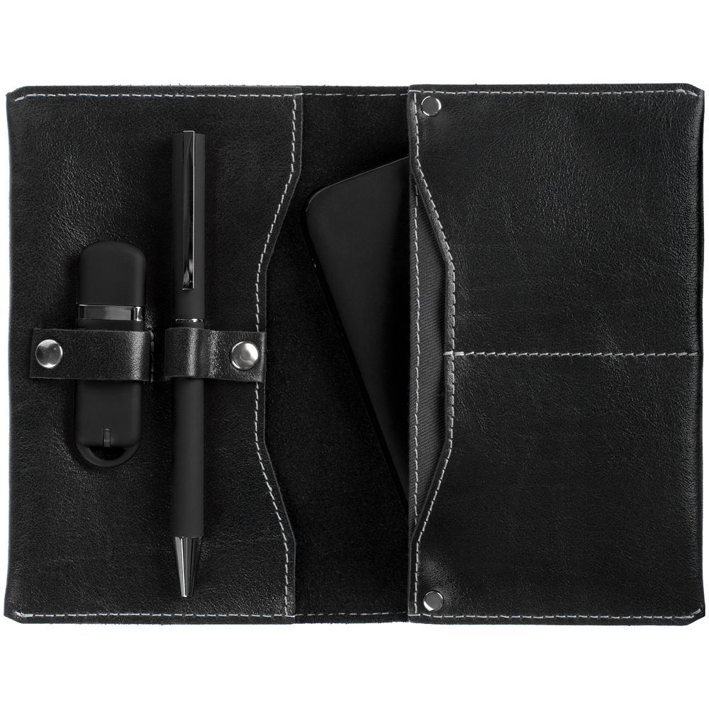 аккумулятор - пластик, покрытие софт-тач, металл, натуральная кожа, органайзер - натуральная кожа, пластик, ручка - металл, покрытие софт-тач, флешка - пластик, покрытие софт-тач