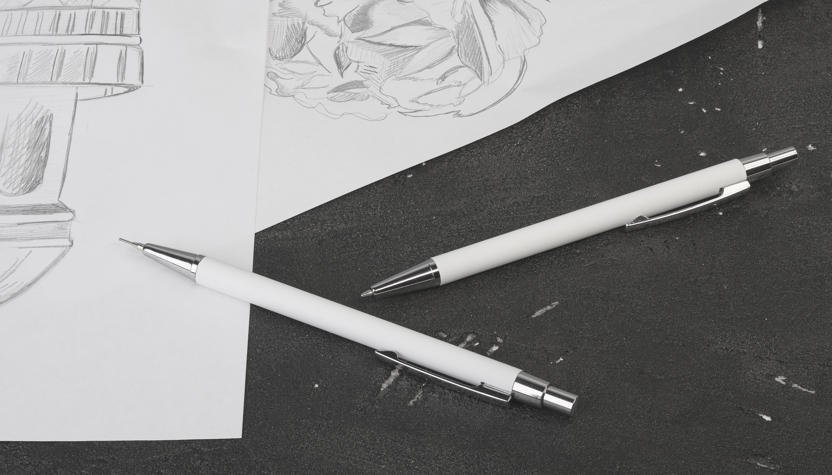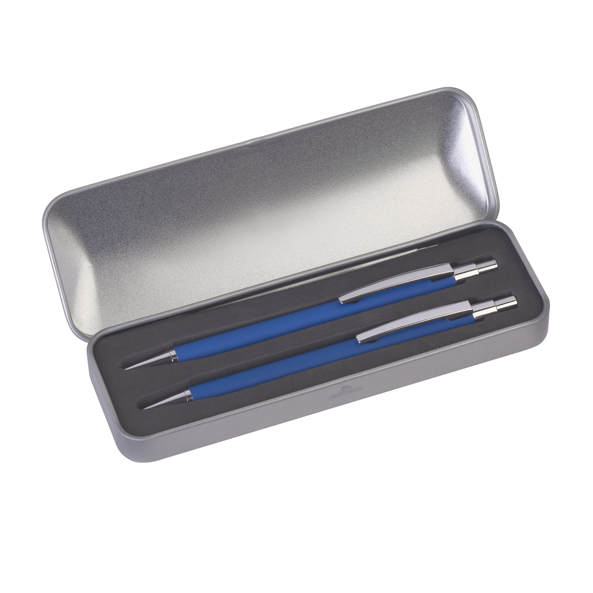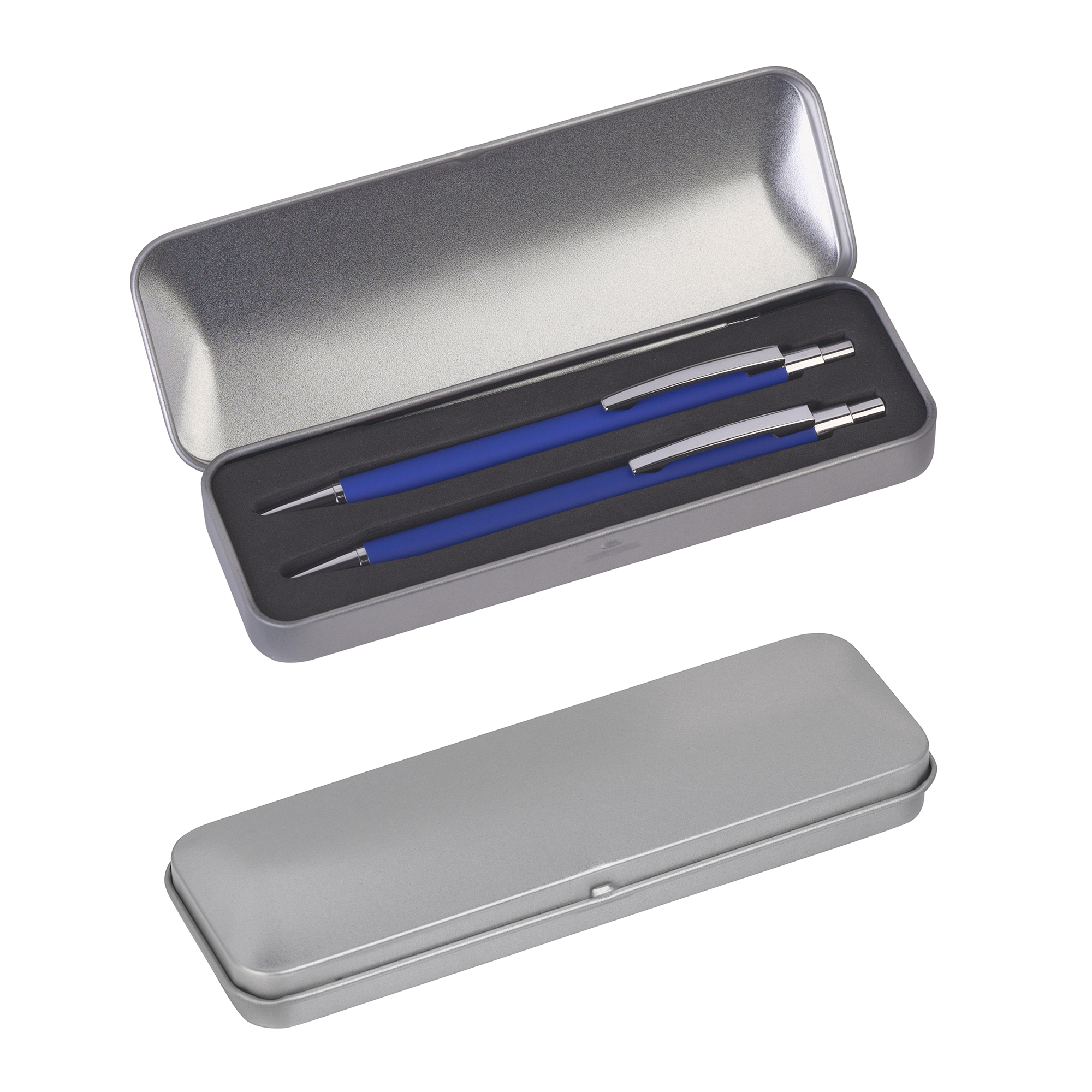 Металлическая ручка и карандаш с корпусом в покрытии soft touch в металлическом черном футляре.