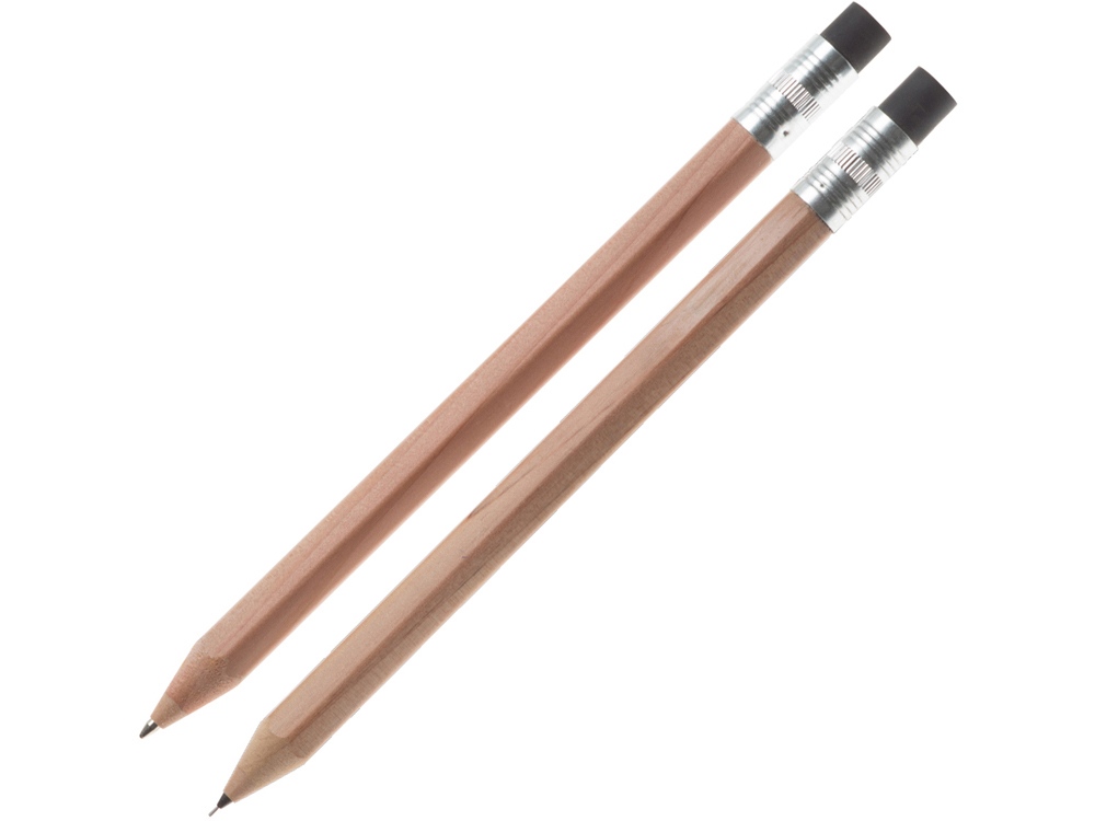Набор письменных принадлежностей, состоящий из шариковой ручки и механического карандаша, предлагается в персональном картонном футляре. Изюминкой набора является ручка, корпус которой стилизован под карандаш, так что на первый взгляд кажется, что набор состоит из двух карандашей. Тампопечать (1 цвет (цветные изделия)) на данный товар осуществляется бесплатно. Оплачивается только настройка оборудования в размере 4000 рублей на весь тираж.