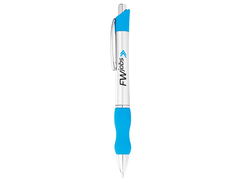 Шариковая ручка с кнопочным механизмом и резиновым держателем. Гравировка (оптоволоконный лазер) (Без чернения) на данный товар осуществляется бесплатно. Оплачивается только настройка оборудования в размере 950 рублей на весь тираж.