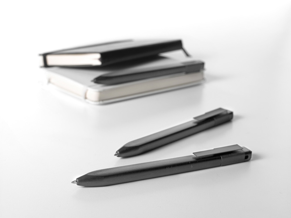 Идеально сочетается с блокнотом Moleskine, специально предназначена для крепления на стороне классической черной обложки. Характеристики: черные чернила; шариковый стержень; сменный стержень; выдвижной наконечник; матовое белое покрытие АБС; серый полированный стальной зажим (зарегистрированный дизайн) с выгравированным логотипом;16 наклеек для оформления ручки.
