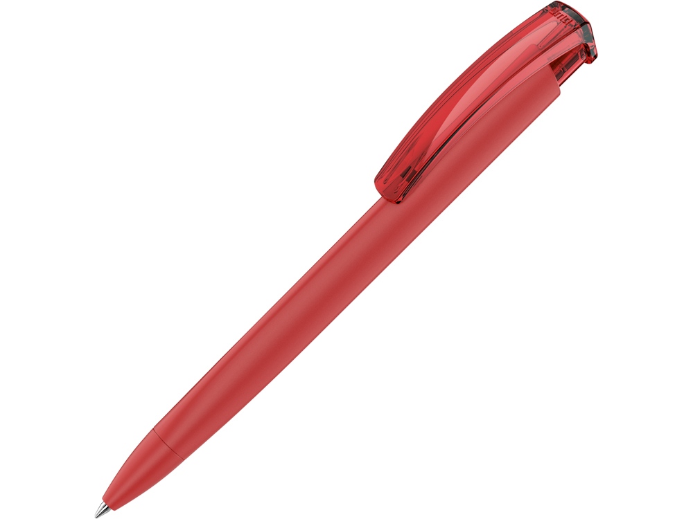 Ручка шариковая трехгранная UMA TRINITY K transparent GUM, soft-touch, красный