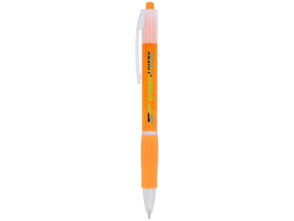 Шариковая ручка Trim. Цветная шариковая ручка с прозрачным корпусом и цветным прорезиненным захватом. Пластик.