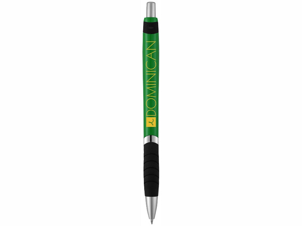 Шариковая ручка Turbo в белом корпусе. Популярная, стильная кнопочная шариковая ручка в белом корпусе с цветным зажимом, резиновой накладкой и дополнительной серебристой отделкой. АБС пластик.