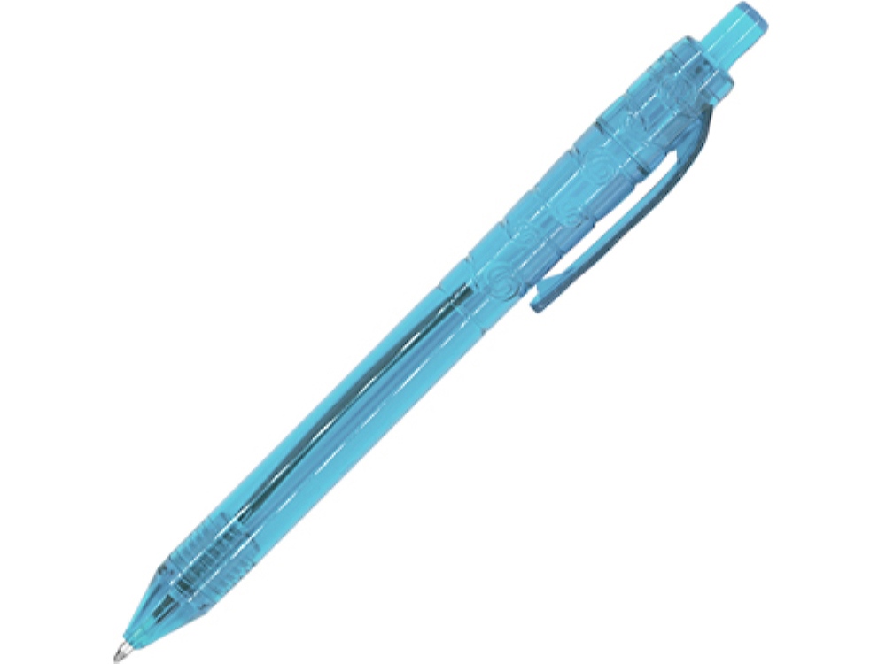 Полупрозрачная дизайнерская ручка из материала RPET. Кнопочный механизм. Синие чернила