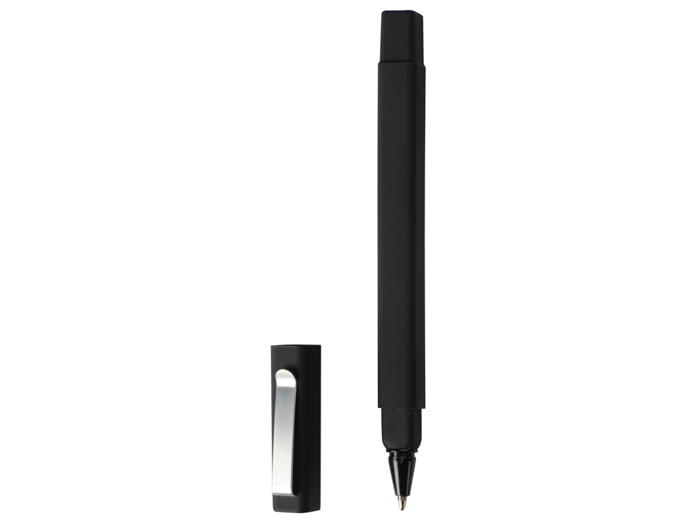 Ручка шариковая пластиковая Quadro Soft, квадратный корпус с покрытием софт-тач, черный