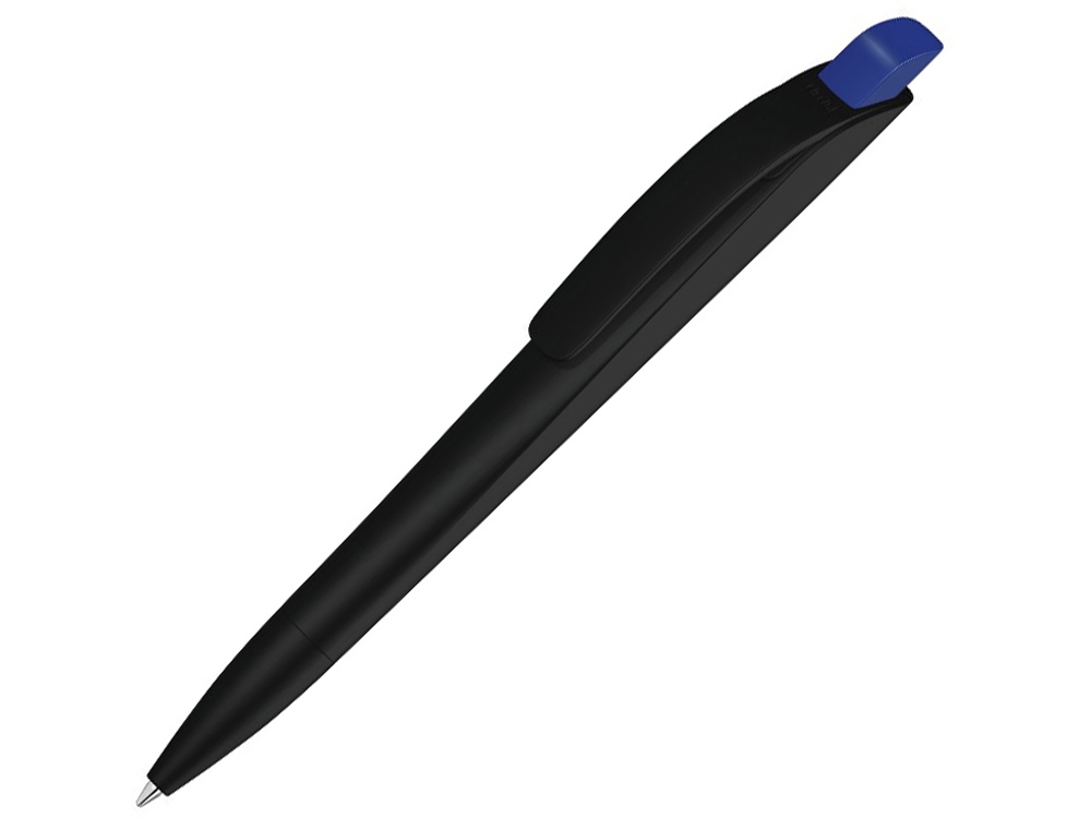 Автоматическая шариковая ручка с нажимным механизмом, матовым тонированным белым корпусом и цветным наконечником, широким изогнутым клипом.