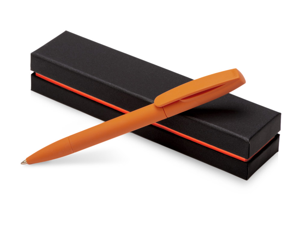 Шариковая ручка с поворотным механизмом и прорезиненным soft-touch корпусом и клипом.