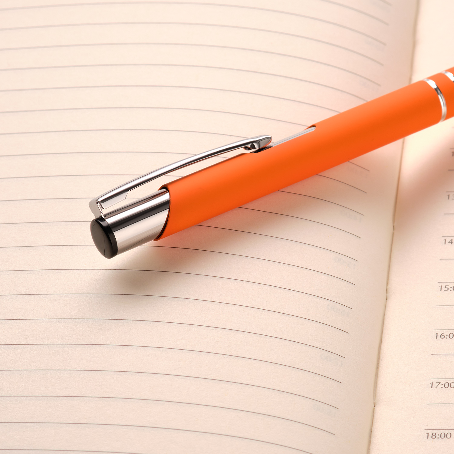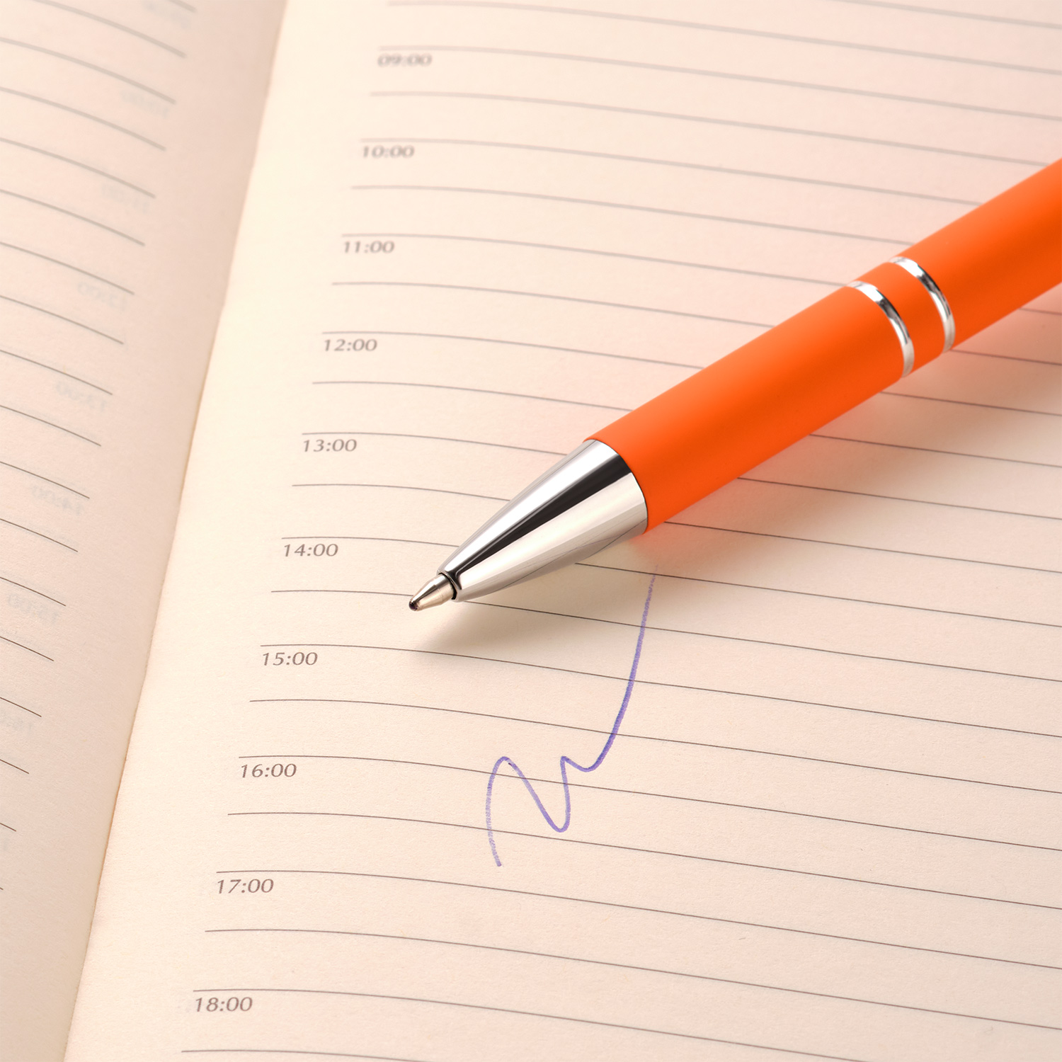 Классическая ручка в шелковистом покрытии Soft Touch станет прекрасным инструментом для письма. Хромированные детали – два декоративных кольца и функциональный надежный клип.—