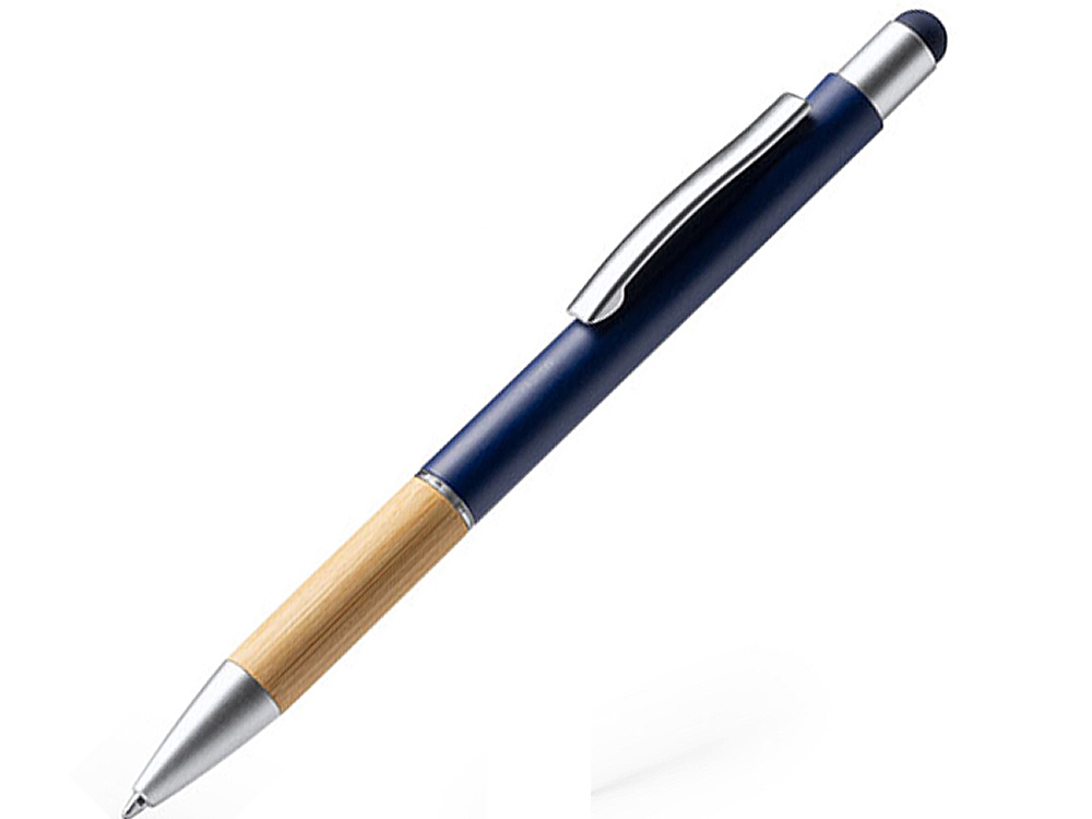 Элегантная металлическая шариковая ручка с матовым покрытием, бамбуковой ручкой и стилусом.