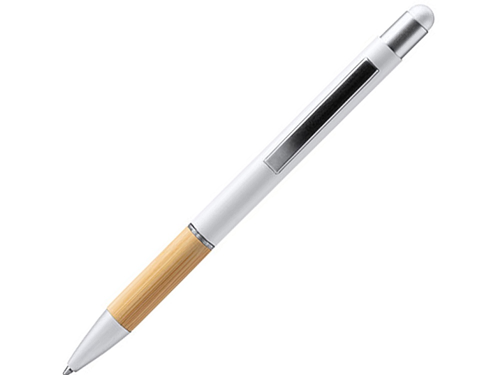 Элегантная металлическая шариковая ручка с матовым покрытием, бамбуковой ручкой и стилусом.
