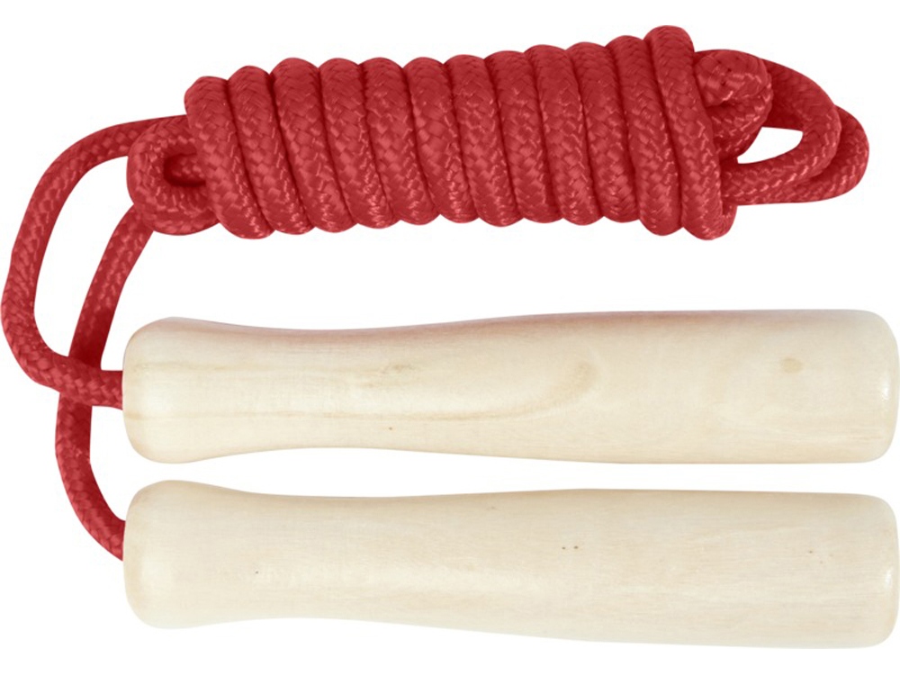 С этой скакалкой ваши дети смогут одновременно заниматься физической активностью и весело играть. Трос из полиэстера представлен в разных ярких цветах, которые привлекают внимание ребенка, а ручки сделаны из дерева. Длина троса составляет 245 см, поэтому эта скакалка подходит для детей ростом до 160 см. В качестве экологически чистого варианта декорирования рекомендуется лазерная гравировка.