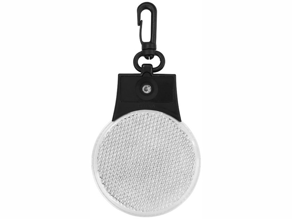 Светоотражатель Blinki. Три режима светодиода (горящий, мигающий и проблескивающий слева направо). Нажмите кнопку питания Вкл./выкл. и переключатель режимов сзади. Пластиковый крючок. Тампопечать (1 цвет (цветные изделия)) на данный товар осуществляется бесплатно. Оплачивается только настройка оборудования в размере 3600 рублей на весь тираж.
