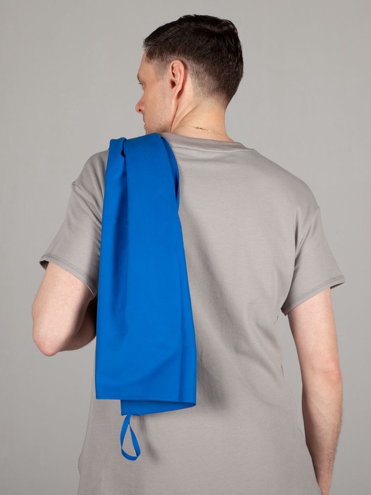 Продуманная деталь: полотенце легко сворачивается и закрепляется резинкой тон в тон, а значит, не займет много места в сумке.
