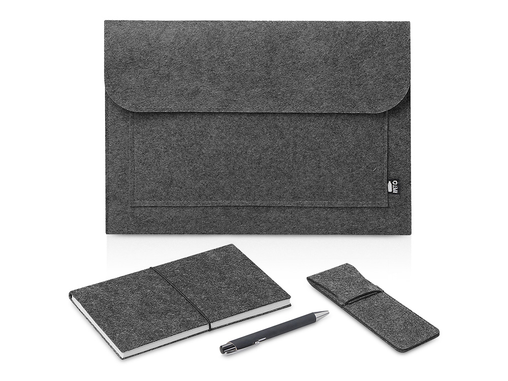 • Вместительный чехол для ноутбуков/планшетов до 14 из переработанного фетра, который служит упаковкой набора.